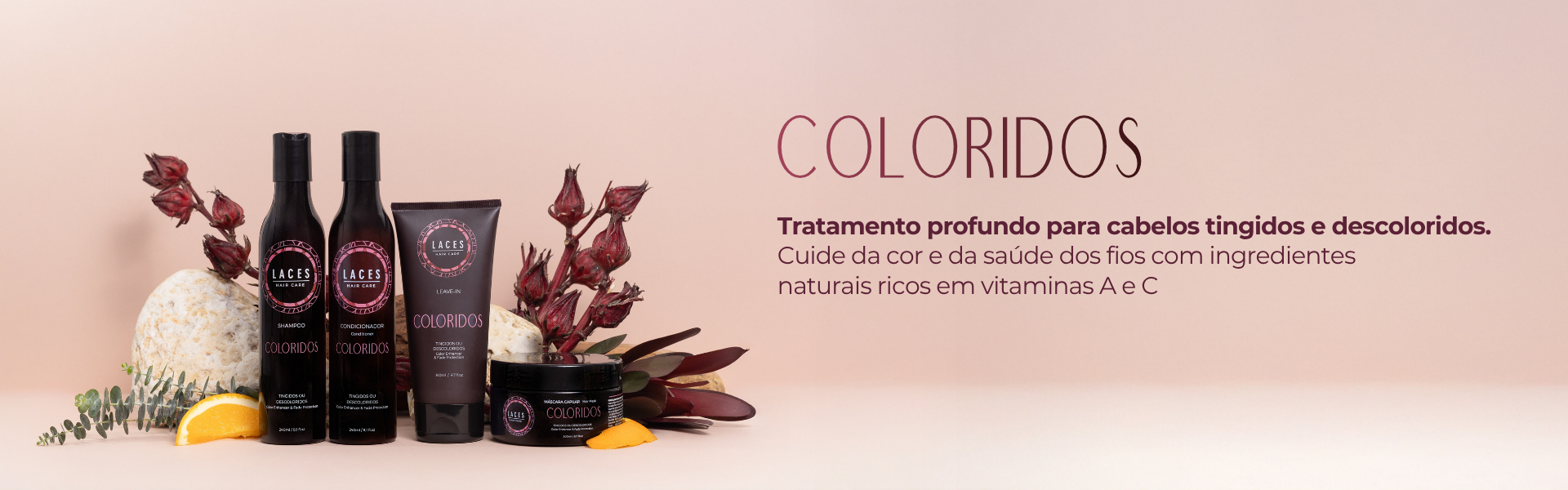 Após o uso do shampoo Coloridos LCS, com o cabelo ainda úmido, aplique a máscara mecha a mecha e deixe agir por 5 minutos. Enxágue totalmente e aplique o condicionador Hibiscos LCS para fechar as cutículas dos fios e finalize com o Leave In Coloridos.